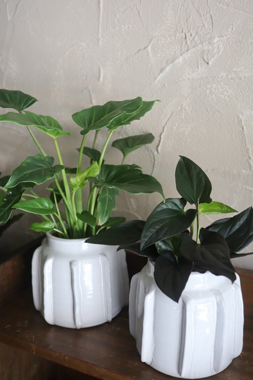 ハンドメイドのぽってり可愛らしいフォルムの鉢カバーです。