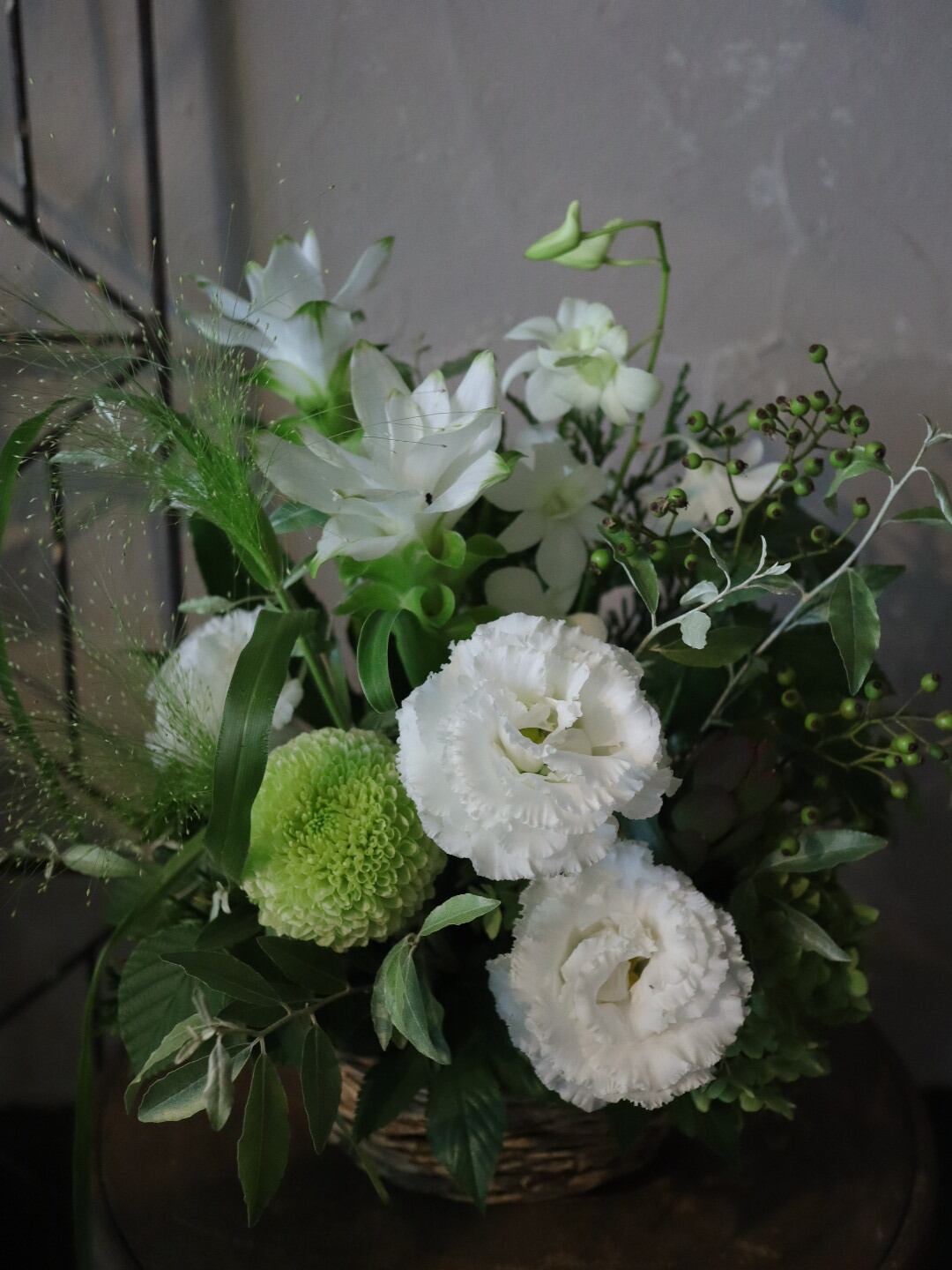 gläntaおススメの季節のお花を使ったアレンジとなりますので了承ください。